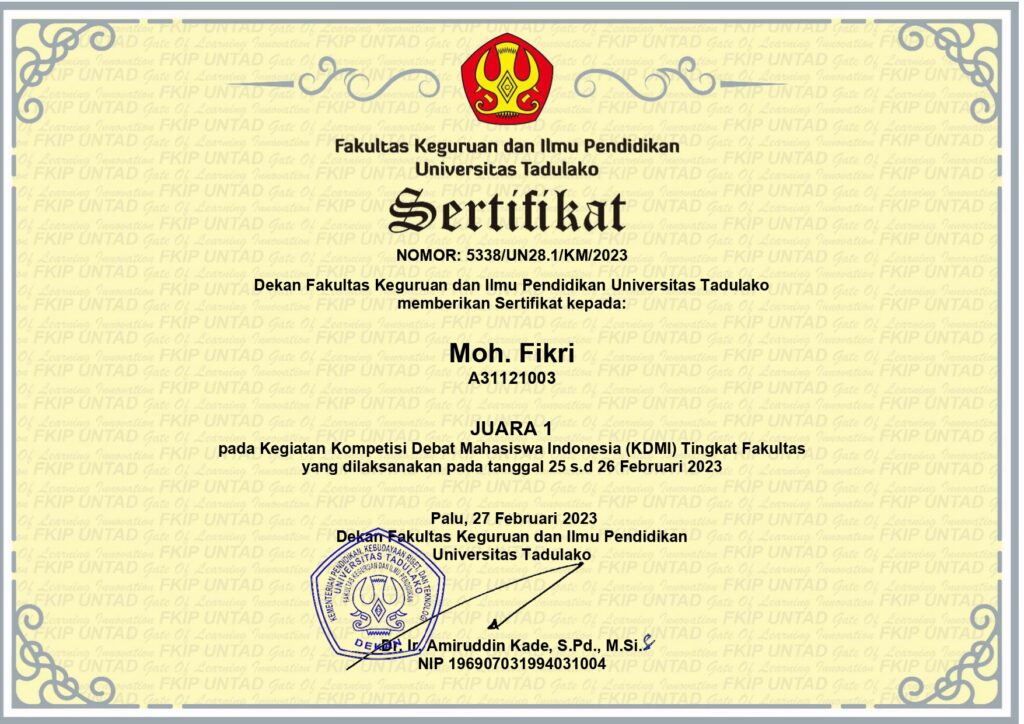 Facebook Twitter WhatsApp LinkedIn Salin Link Lomba Kompetensi Debat Mahasiswa Indonesia Fakultas Keguruan dan Ilmu Pendidikan, Universitas Tadulako, 2023